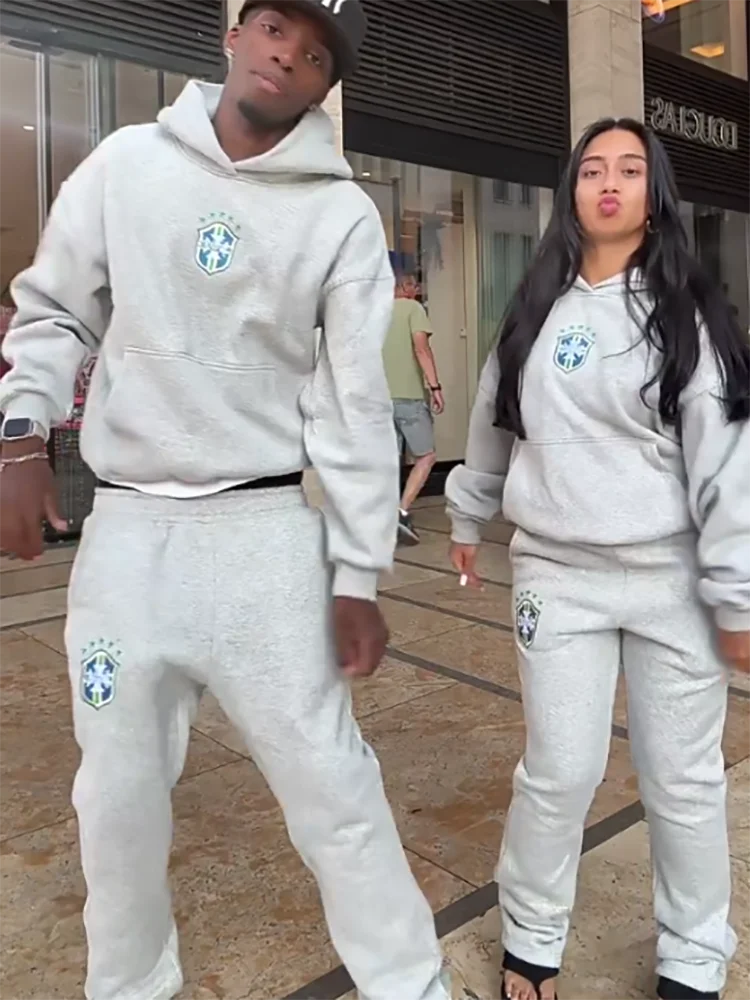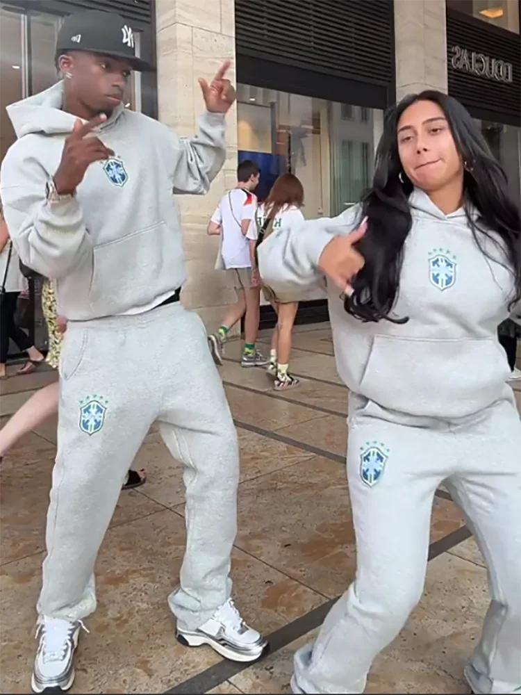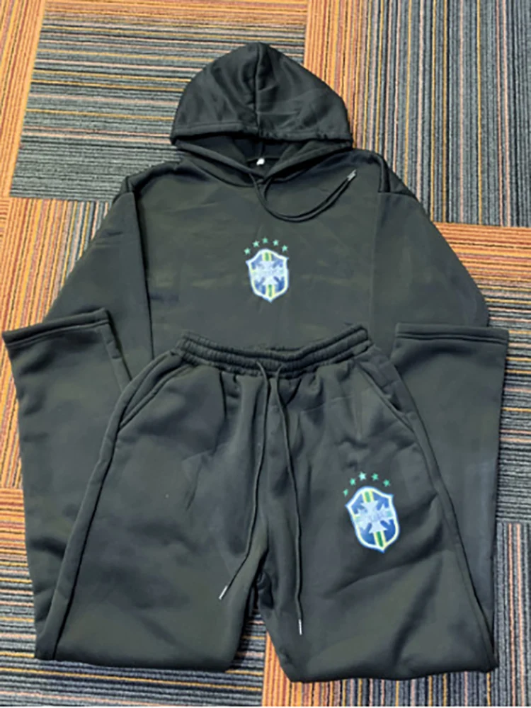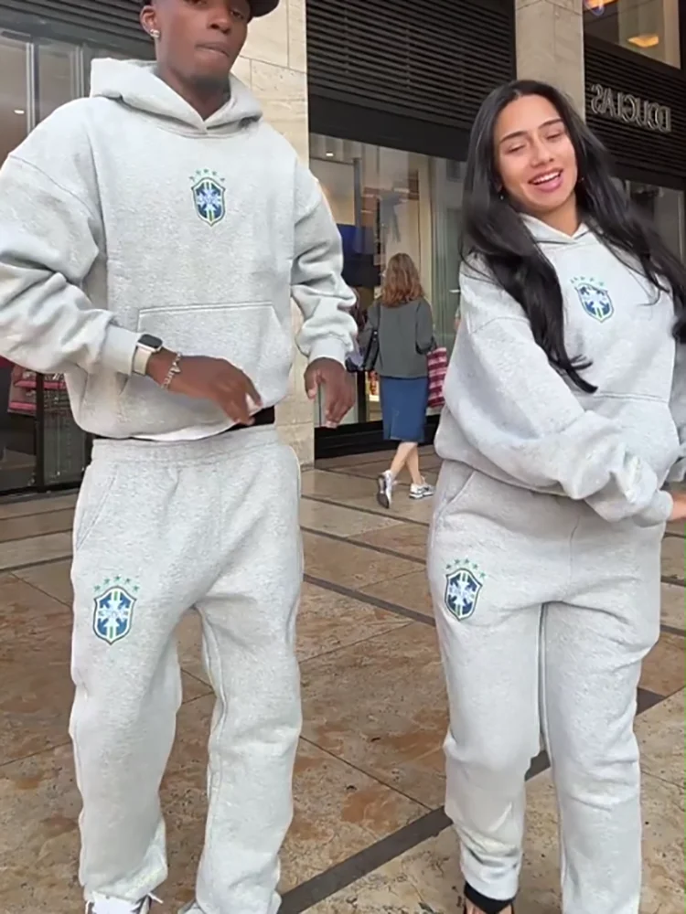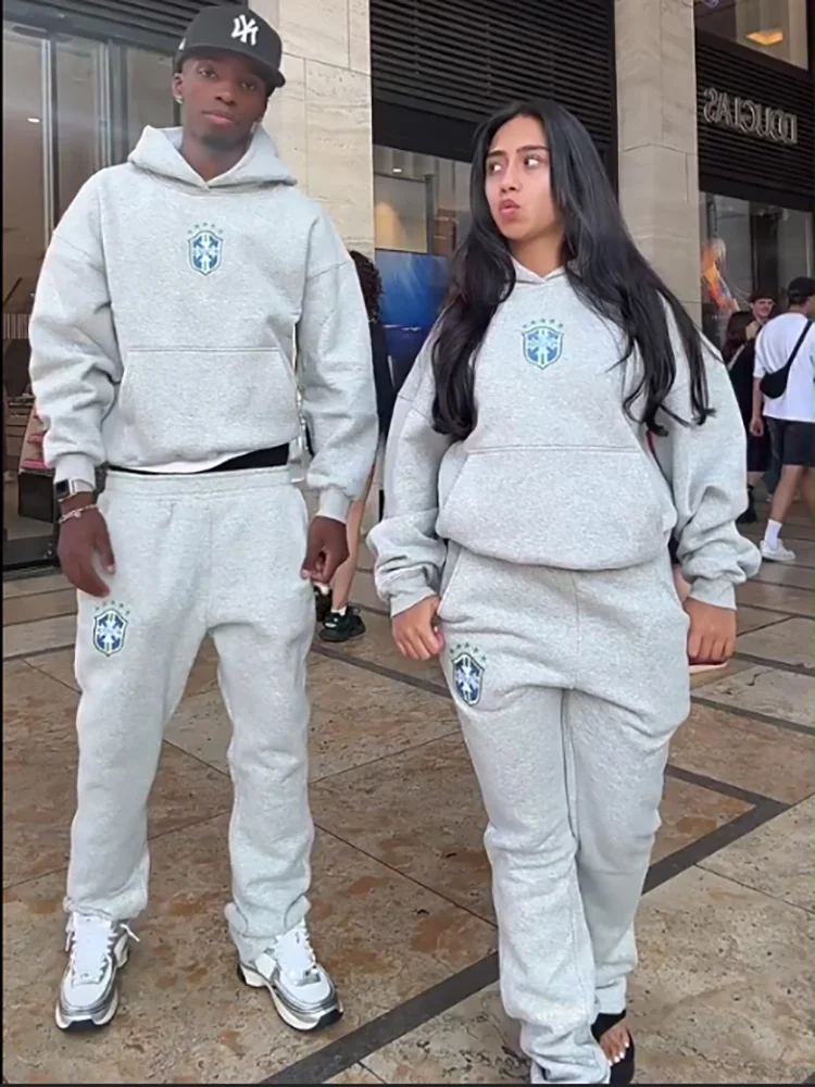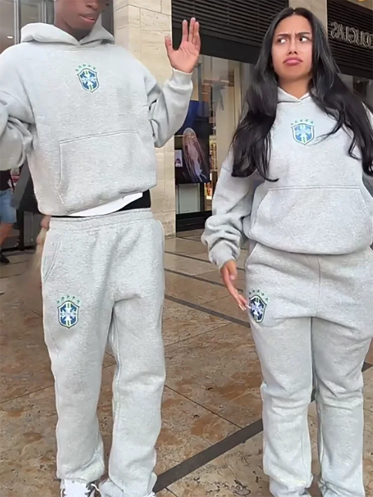 American Hip-Hop Sets Mens High Street Y2K Hoodie Straight Sweatpants Couple Printed Suit Spring Autumn Streetwear Hoodie Sets