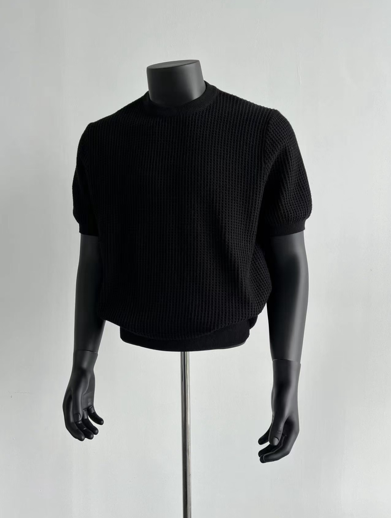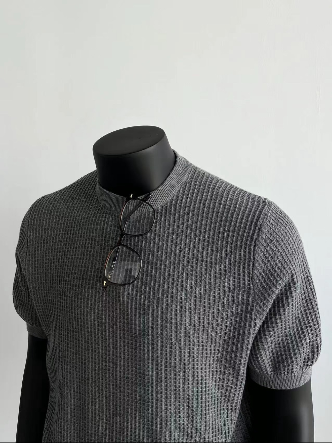 Retro High-End Texture Knit Short-Sleeve T-Shirt for Men