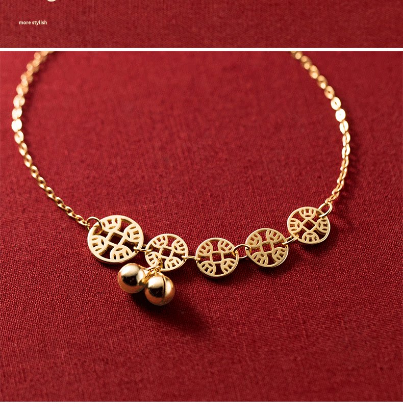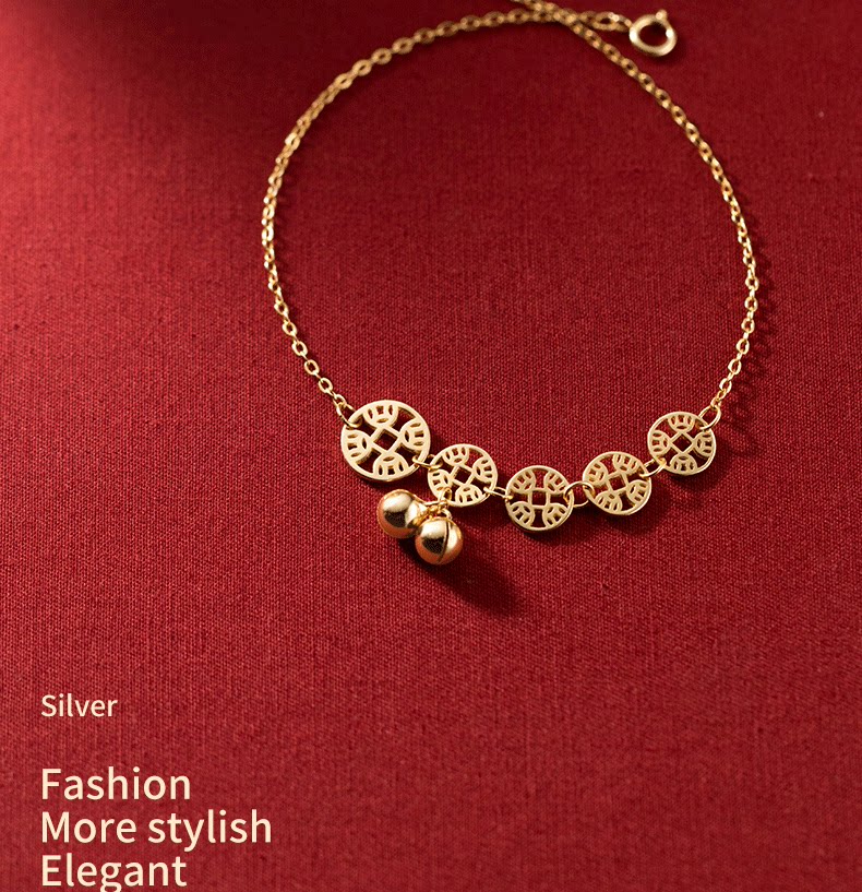 S925 Silver Ethnic Retro Style Copper Coin Bell Men's And Women's Simple Style Temperament Personality Anklet