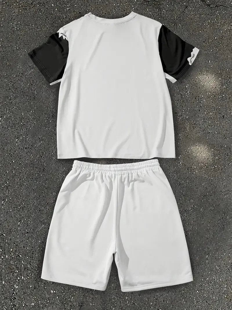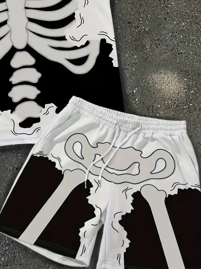 The 2025 summer new men's set features street casual hip-hop fashion comfort and softness with 3D frame pattern prints